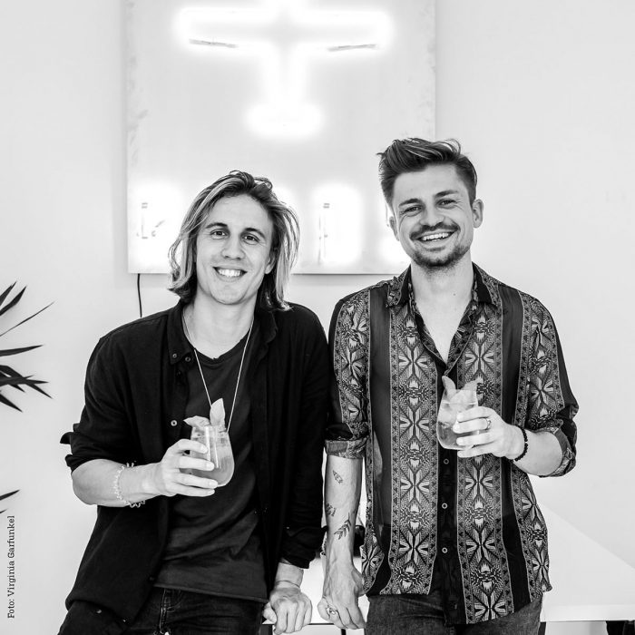 Basti und Lupo haben sich im Studium kennengelernt. Sie sind beide schon viel gereist und wollten einen Gin kreieren, der ihre Leidenschaft zum Reisen unterstreicht. Doch der Weg zum eigenen Gin war nicht immer leicht. Nach einigen Selbsttests mit Kräutermischungen in Weckgläsern holten Sie sich professionelle Unterstützung von einer Brennerei. In Sachen Marketing sind die beiden Profis, das sieht man an der Birds Gin Flasche. Auffällig sind die schwarze Farbe und die eckige Form und wer den Trick zum Öffnen nicht kennt, bleibt auf dem Trockenen sitzen. Basti und Lupo lieben Basilikum und deshalb ist Basilikum auch Hauptbestandteil der Perfect-Serve-Empfehlung der beiden.